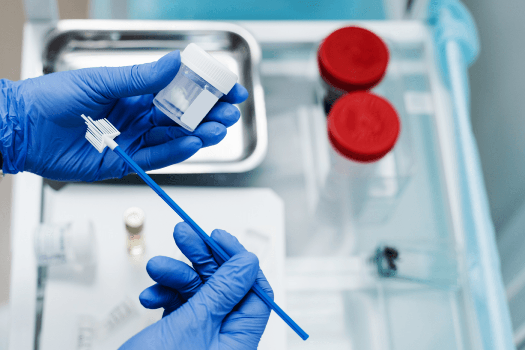 - Λήψη: Ο γιατρός χρησιμοποιεί μια ειδική σπάτουλα ή βουρτσάκι.